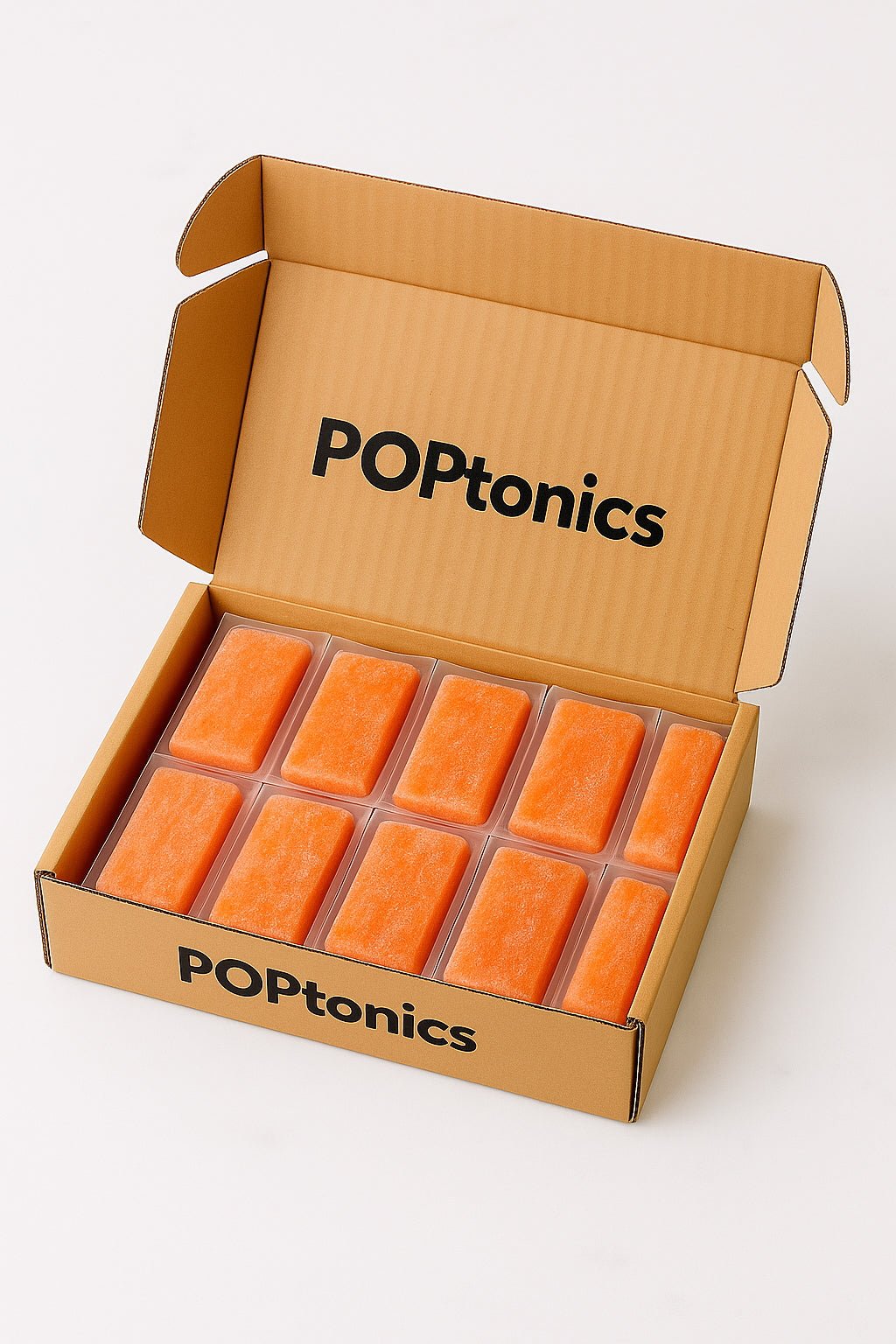Each Restore POPtonic blends fresh orange, ginger, turmeric with activating black pepper you can see right in the tonic pop! — flash-frozen at peak freshness for maximum flavor and functional benefits. Melt into hot, cold, or sparkling water for a vibrant, citrus-forward tonic that supports digestion, circulation, and natural energy.